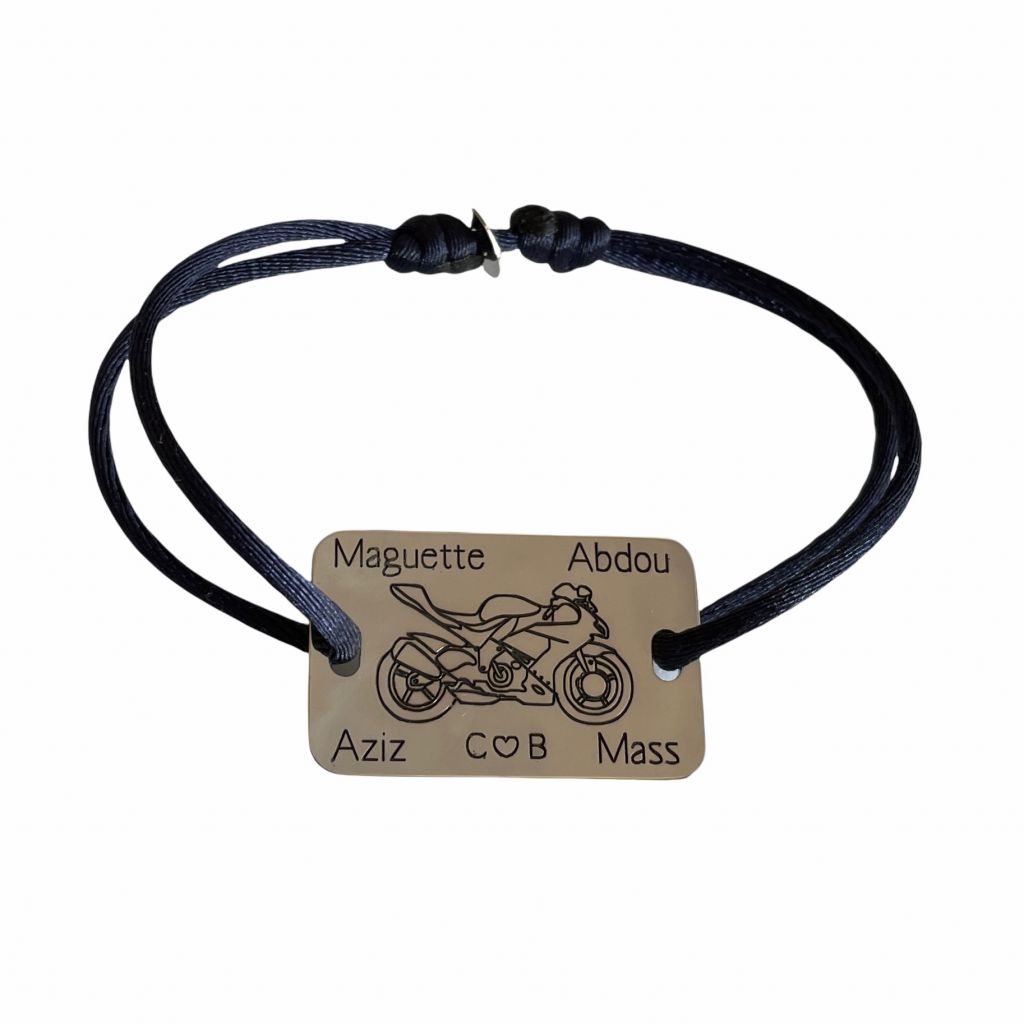 Magnifique moto de route montée sur cordon, possibilité de graver un prénom. Plaque 22 X 35 mm Gravures noircies en option