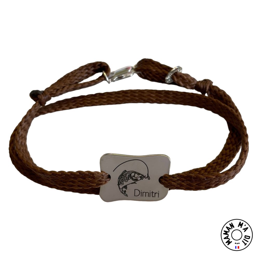 Bracelet galet rectangle poisson carpe pêcheur. Gravure noircie en option