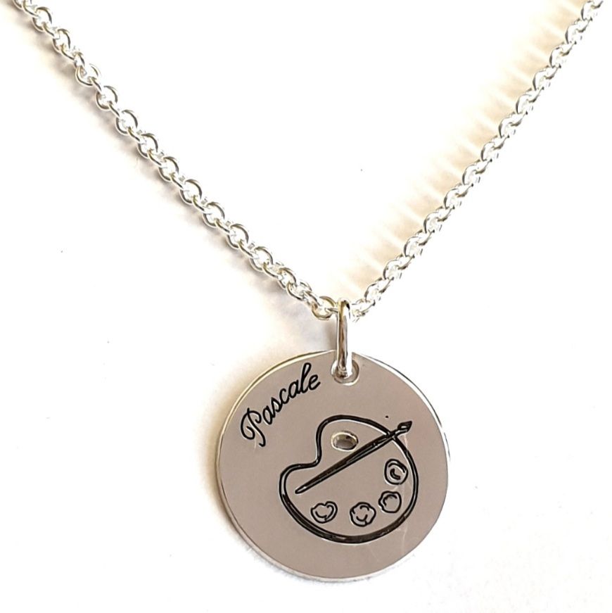 Collier pendentif 20 mm palette de peinture montée sur chaîne.