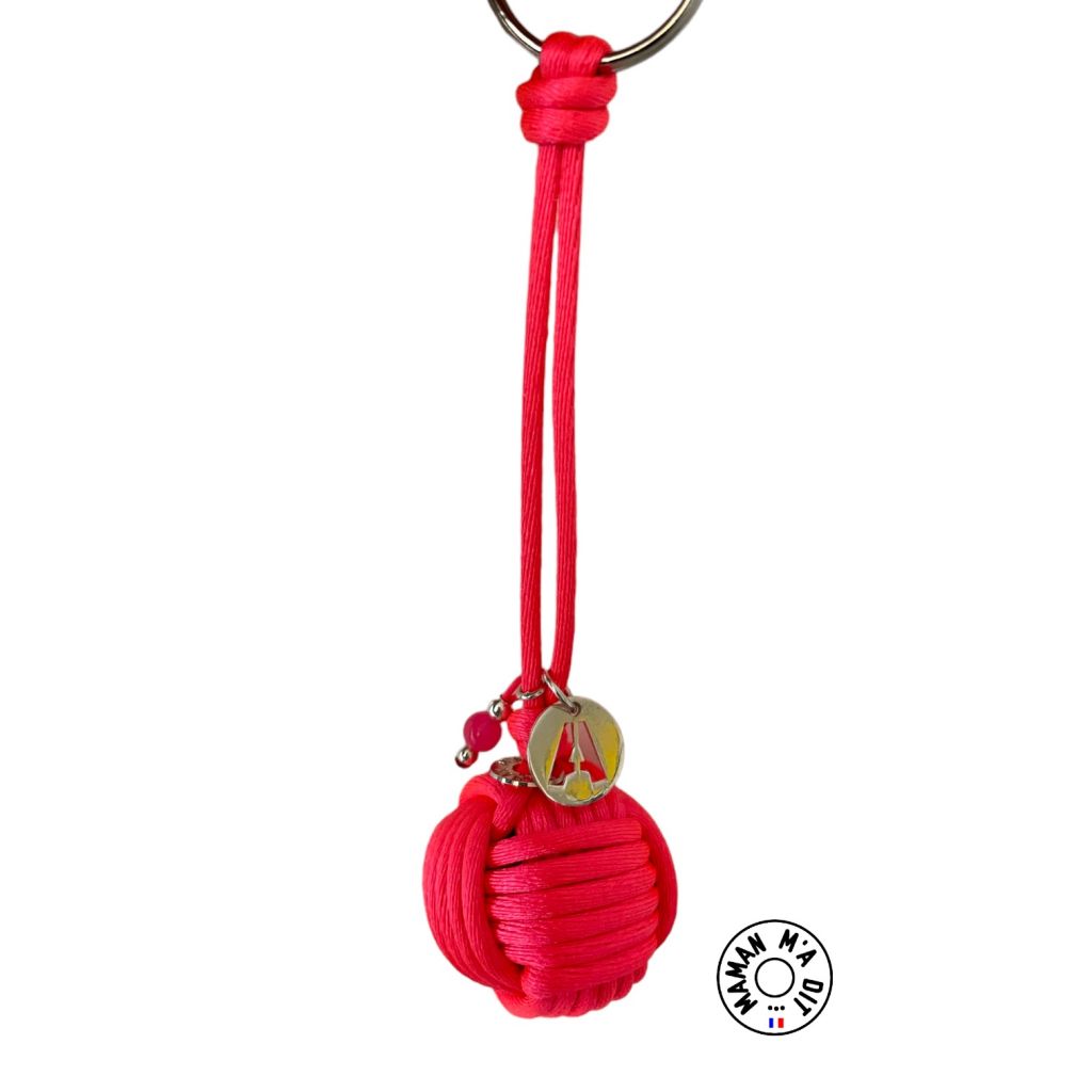 Porte clé noeud marin (boule de Touline) sur cordon queue de rat. Lettre au choix 11 mm pompon perle coordonné