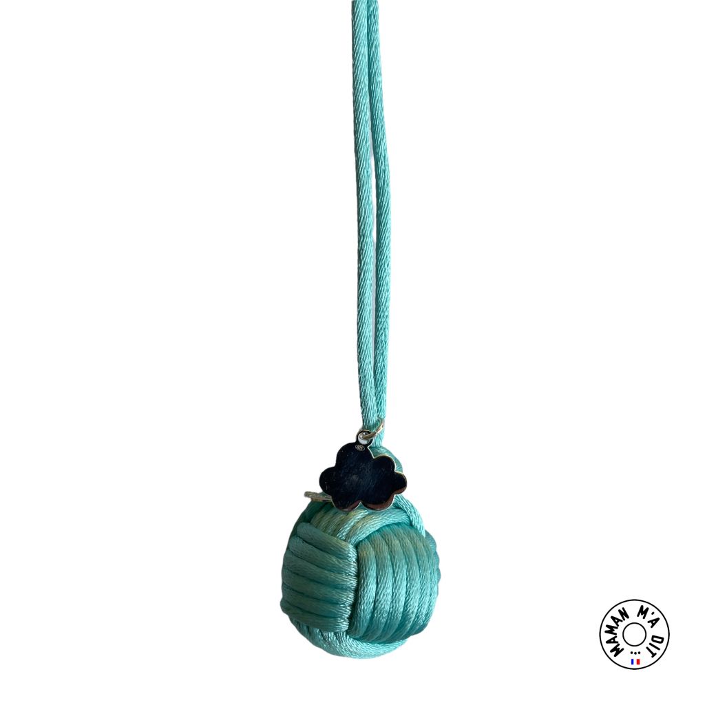 Porte clé noeud marin (boule de Touline) sur cordon queue de rat. Médaille nuage gravable