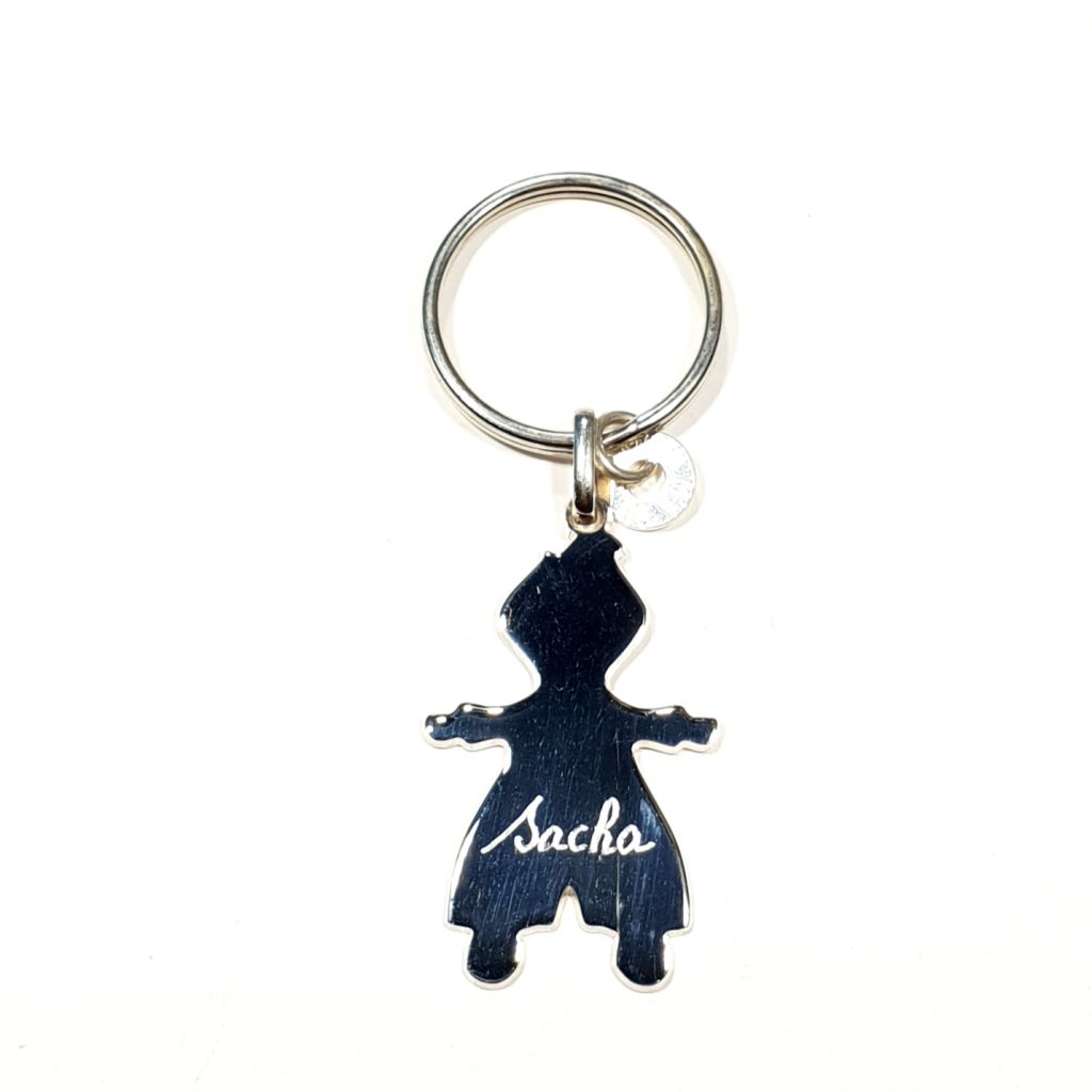 Pendentif garçon 40 mm en argent, possibilité de graver plusieurs prénoms Possibilité d'ajouter des personnages, ceux ci coulisseront sur l'anneau, les personnages auront tendance à se superposer. Finition anneau.