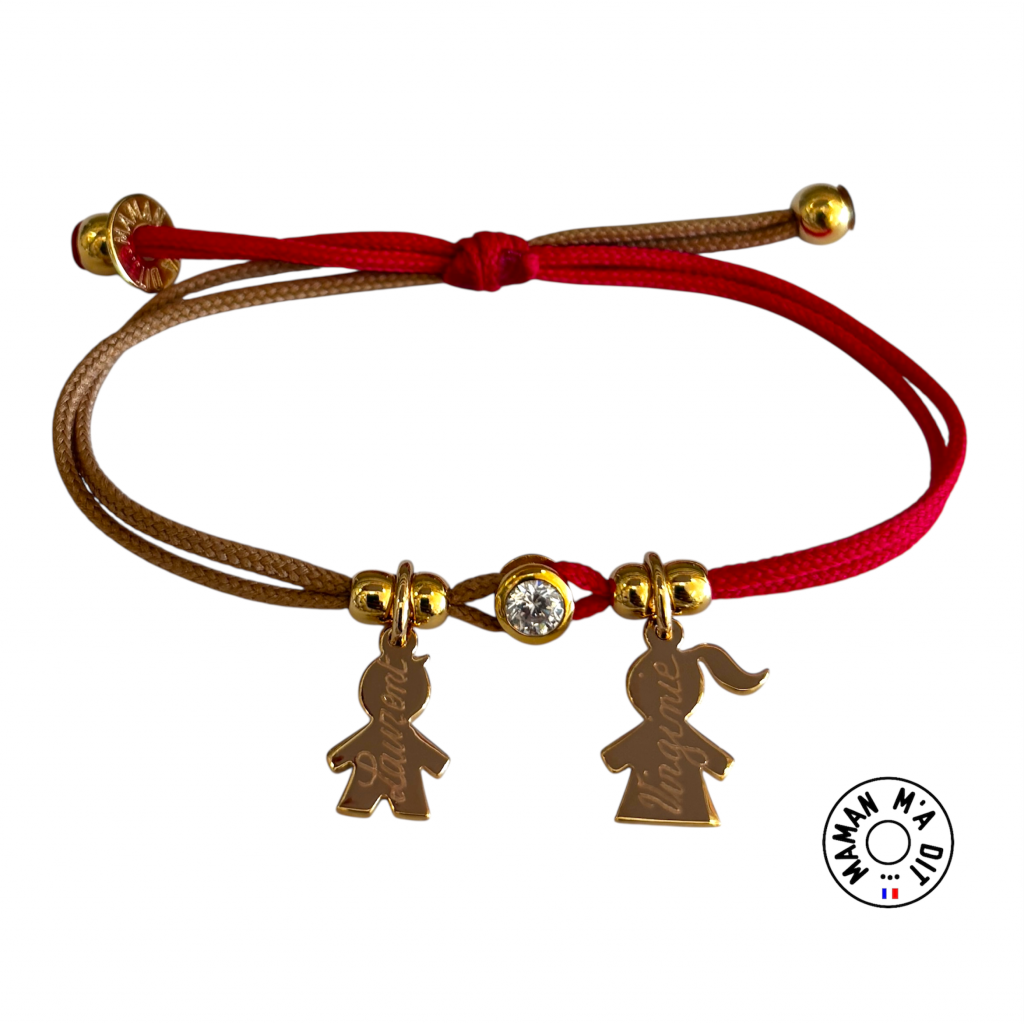 Bracelet avec 2 petites filles ou garçons et zirconium. Finition et perles comprises