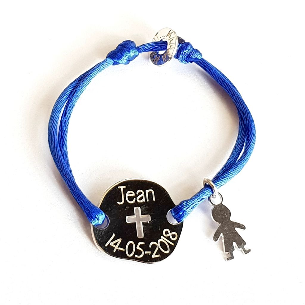 Bracelet galet croix ajourée, mini médaille au choix