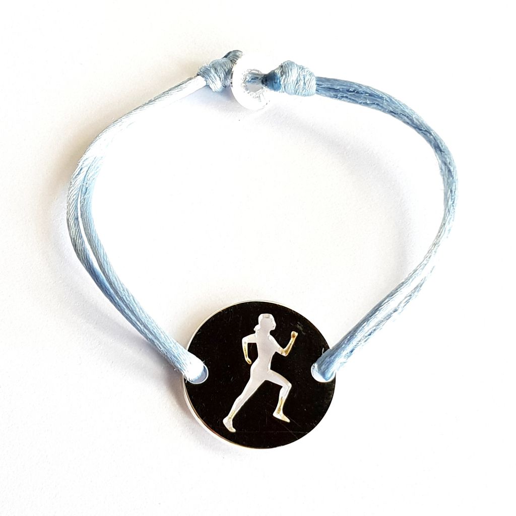 Bracelet coureuse running femme ajouré dans jeton 24 mm, prénom au choix