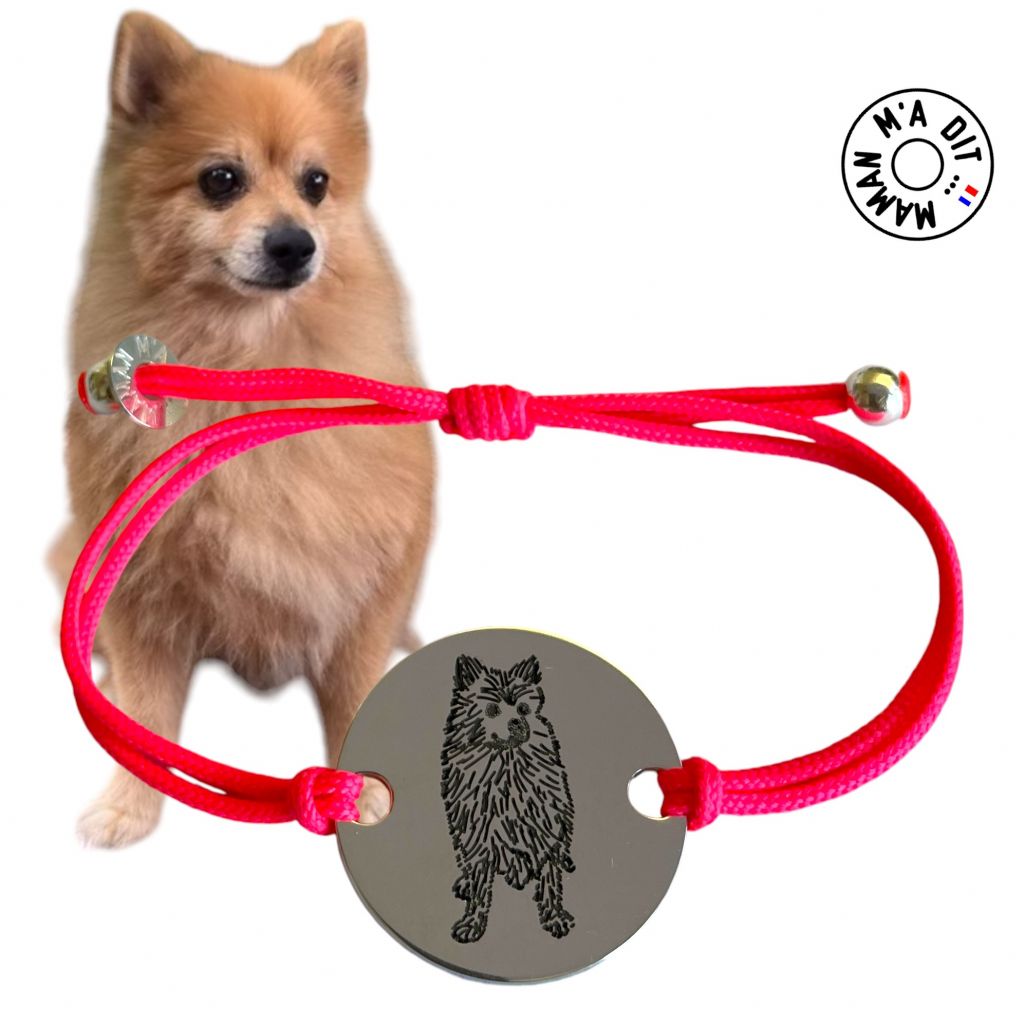 Chien Spitz sur jeton 24 mm , possibilité de graver un prénom et une autre race