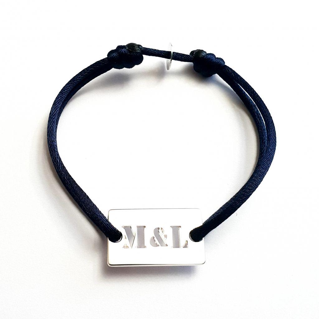 Bracelet plaque rectangle 15 x 25 mm, 2 lettres ajourées au choix.