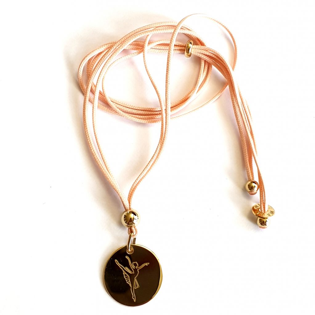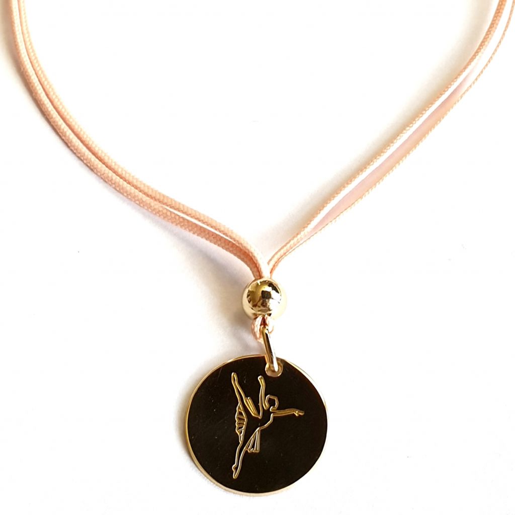 collier medaille 20 mm danseuse gravée, possibilité de rajouter un prénom.